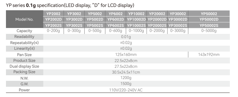 YP-D 200g/0.01g,300g/0.01g,500g/0.01g/600g/0.01g1000g/0.01g, 2000g/0.01g, 3000g/0.01g,5000g/0.01g